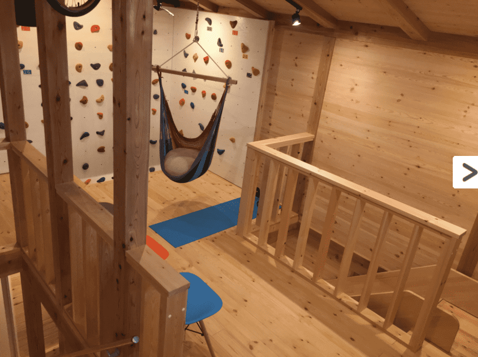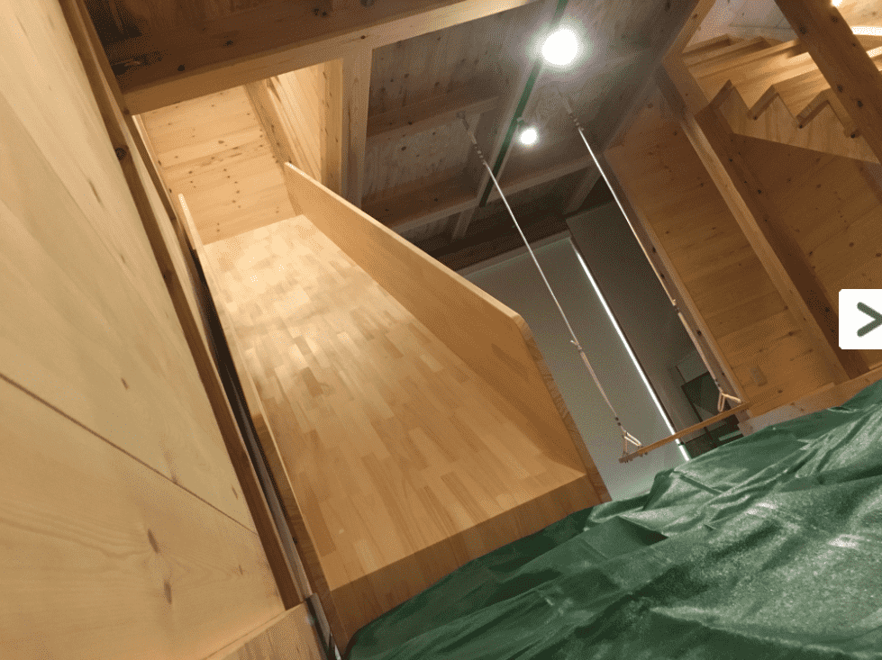 ボルタリングで1階から2階まで登って、すべり台で1階へ戻れるような作りになっています。